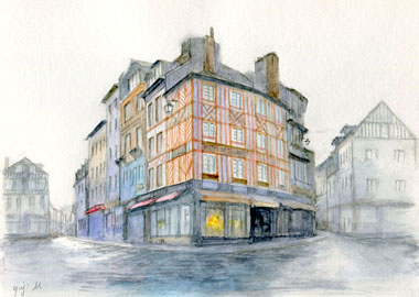 オンフルール旧市街のホテル。1階はギャラリーになっていました。