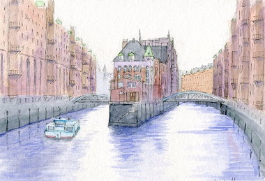 港湾都市ハンブルク。運河を囲むように建つ赤レンガの倉庫街は世界遺産になっています。