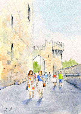 エーゲ海のロードス島、ギリシャ領ですが、目と鼻の先はトルコ。 今はすっかりリゾートになっていますが、かつては地中海世界の要衝であり、古代から中世、近代に至るまで常に戦場となっていました。 島には古代ギリシャのアクロポリスや中世の城塞都市が残っていて、その歴史がしのばれます。