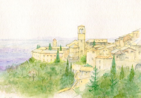 アッシジはフランチェスコ会を創設した聖フランチェスコの出身地であり、巡礼地として多くの人々が訪れる。